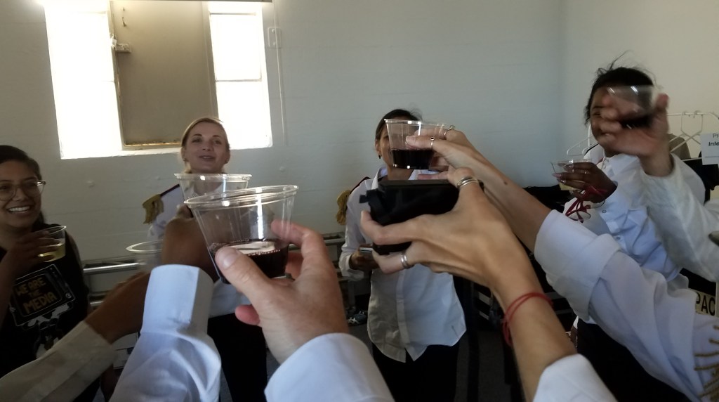 Script Writers: maria faini, David Moren, with Julie Thi Underhill | Set Design and Construction: maria faini, Sameena Sitabkhan, Tony Sgroi, and Alfredo Arroyo | Scenic Designer/Graphics: Sameena Sitabkhan | Costume Designer: Chris Hambrick | Sound Designer: Chris Hambrick